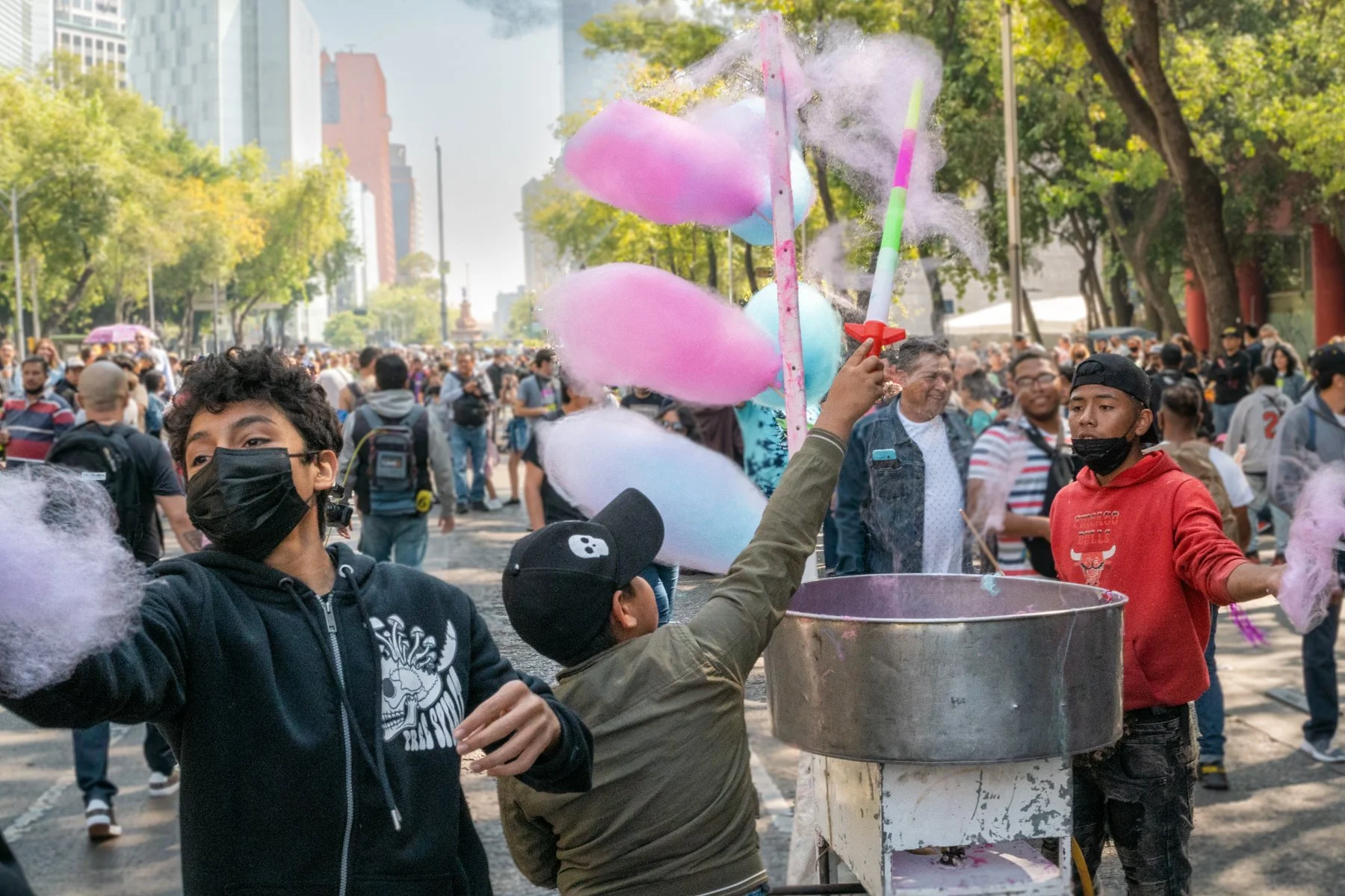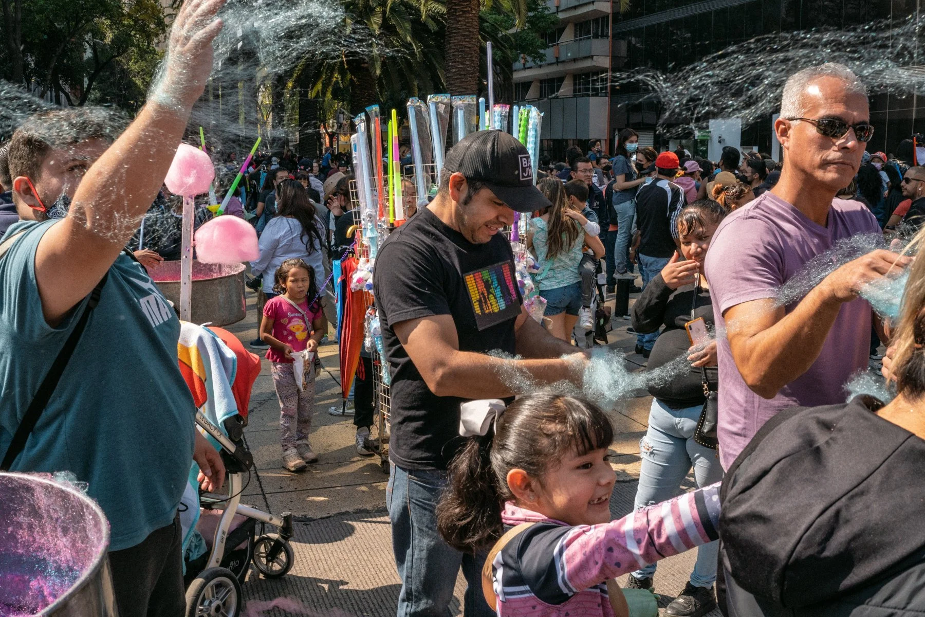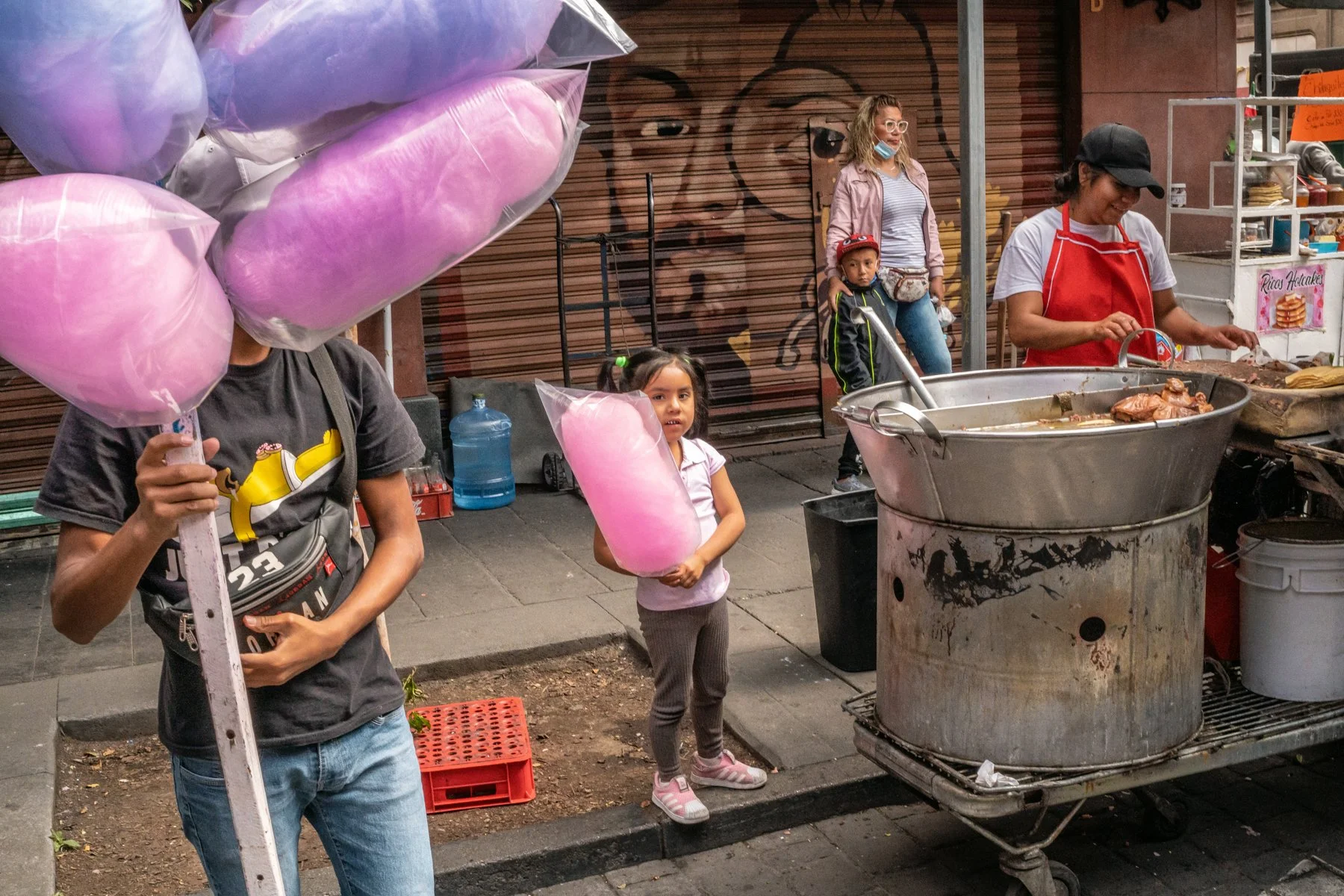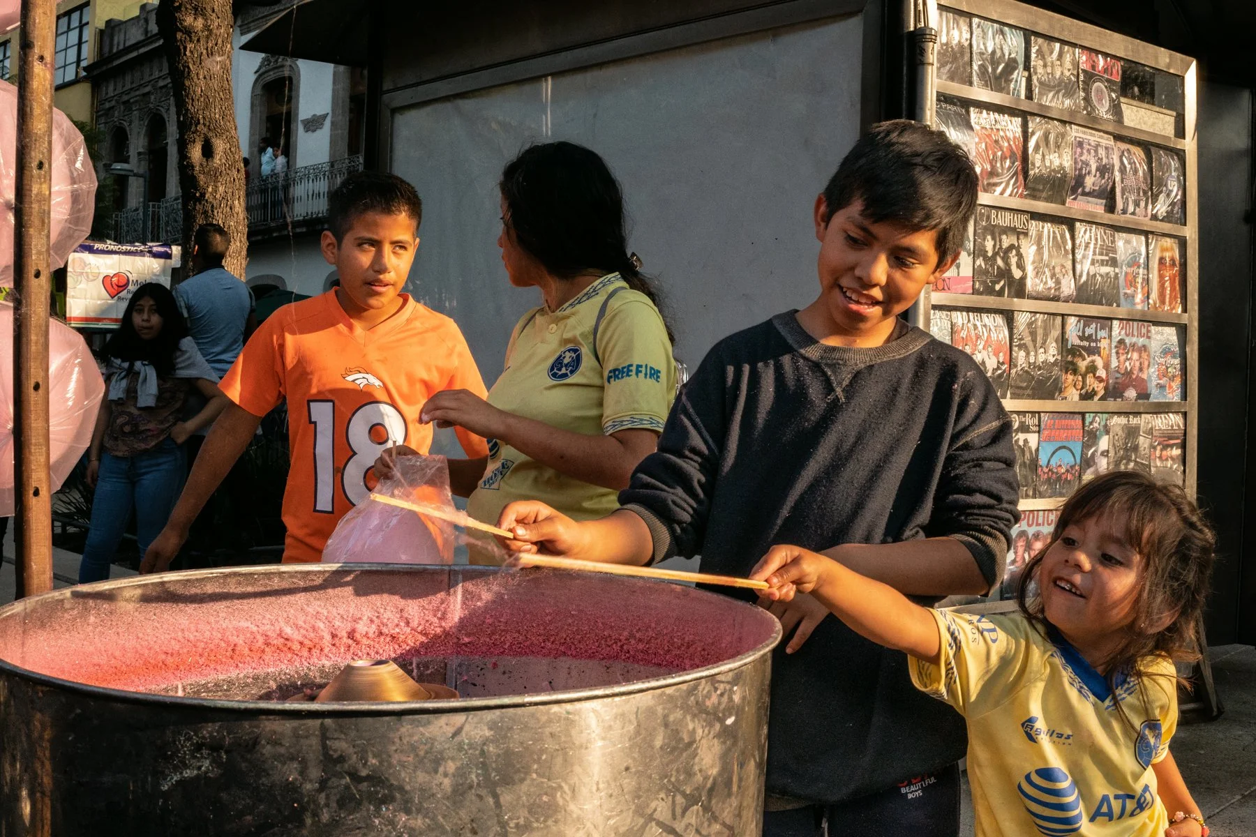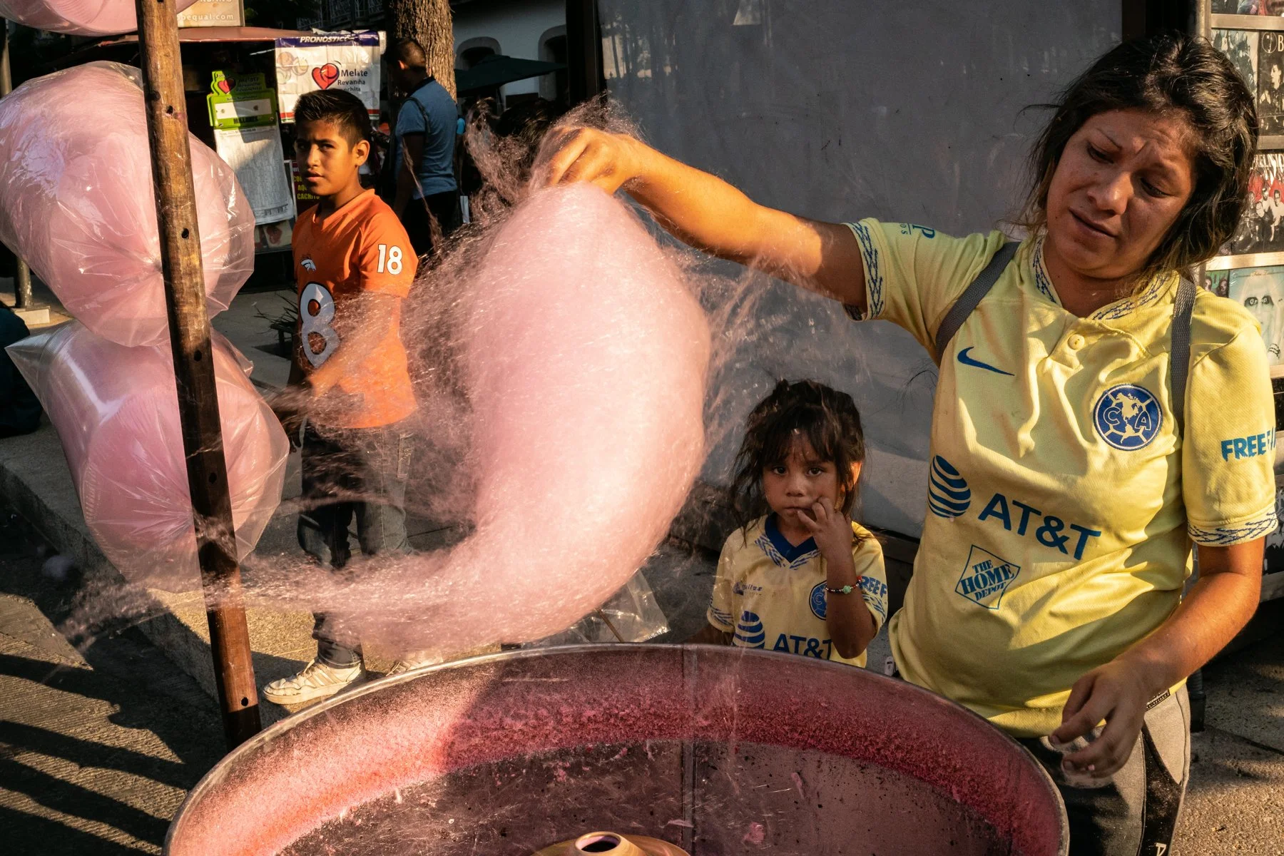 Vi a una mujer con sus hijos haciendo algodón de azúcar. Hice un par de fotos. Me quedé ahí un rato, observando.